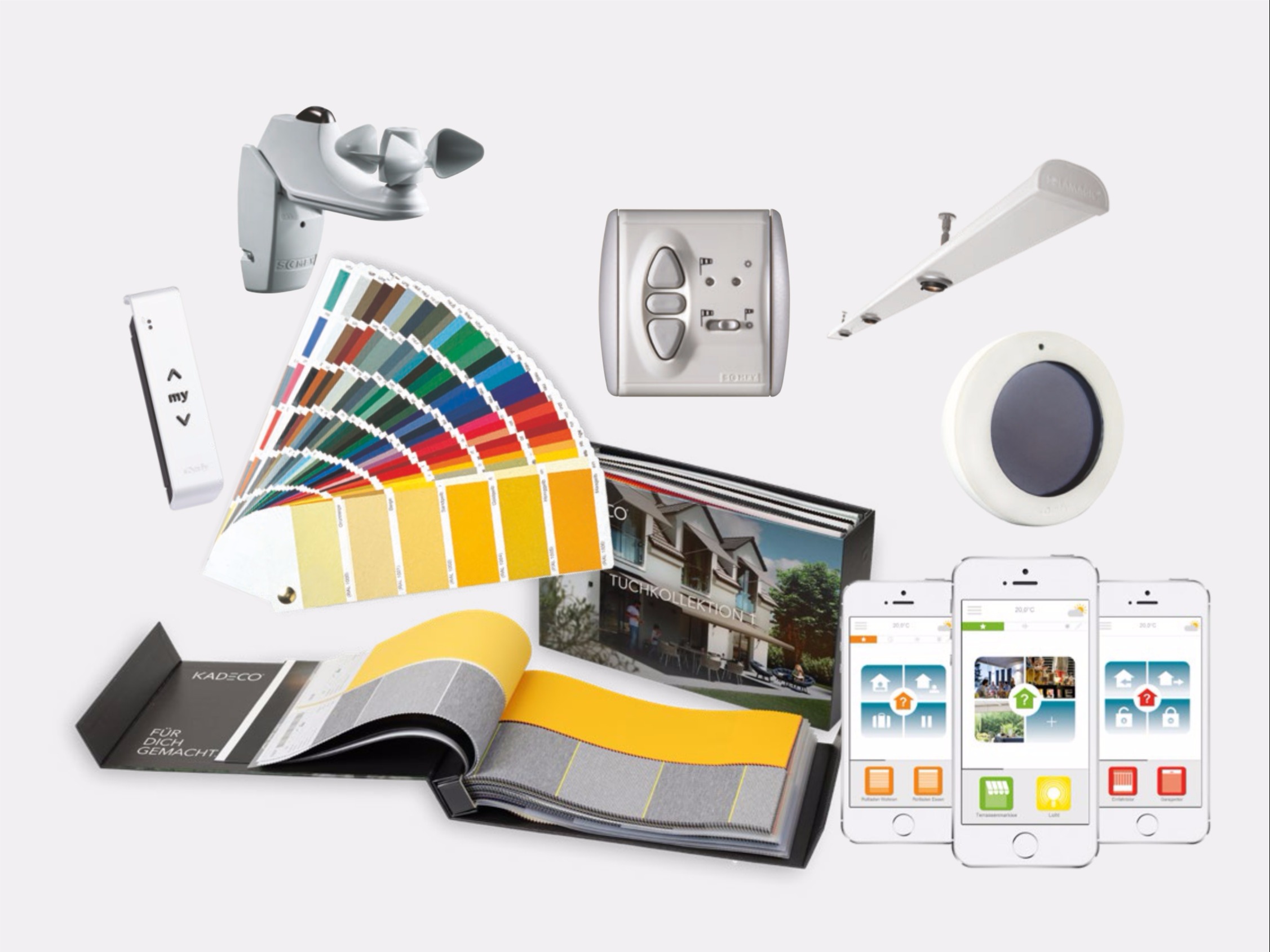 Neben Standardfarben kannst Du Sonderfarben aus der gesamten RAL-Palette wählen. Stimme die Markisenfarbe individuell auf Fassade und Fenster ab. Die aktuelle Kollektion umfasst über 200 Markisentücher: von klassischen Block- und Multistreifen über Unifarben bis hin zu technischen Geweben in unterschiedlichen Transparenzgraden und Ausrüstungen.